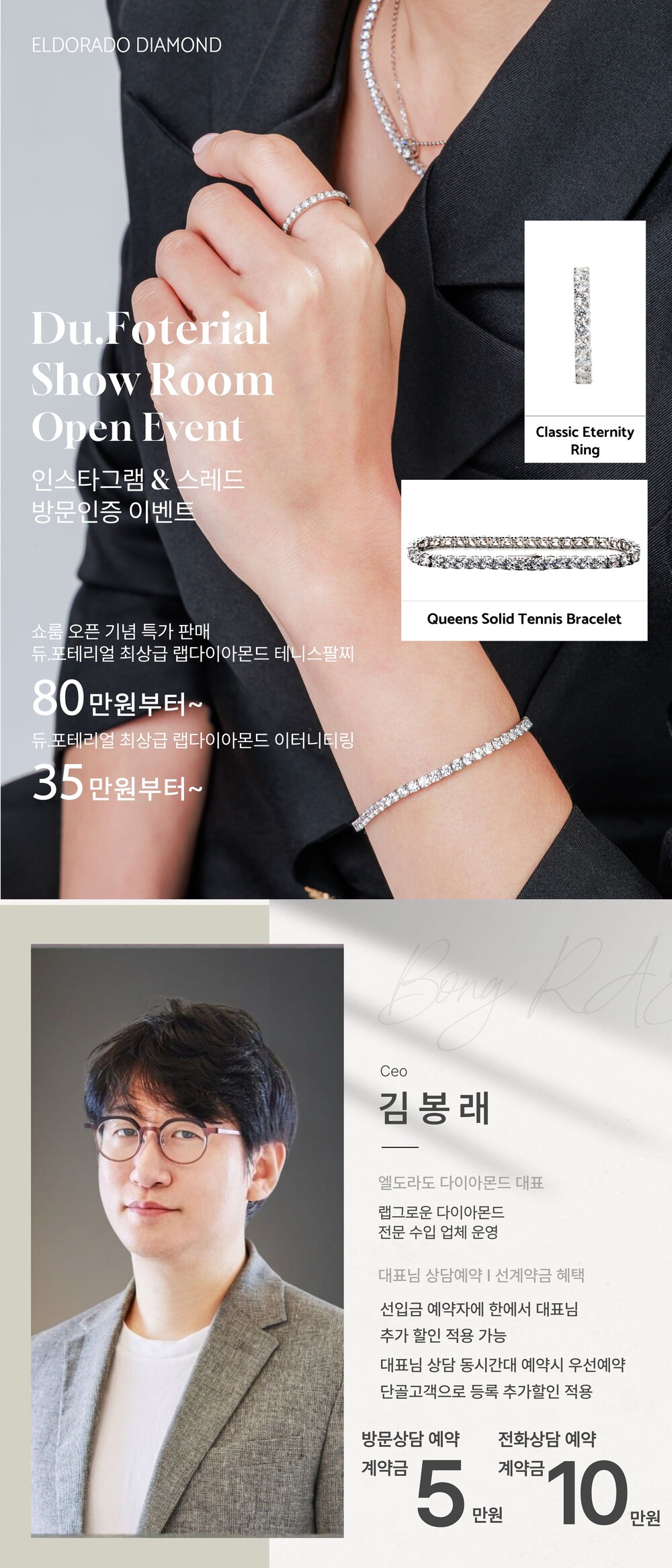 법인명(상호) : 엘도라도 다이아몬드 대표자(성명) : 김봉래 사업자등록번호 : [209-32-63831] 전화 : 02-766-4457