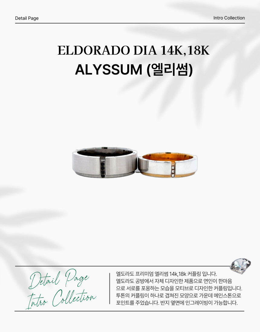 엘도라도 프리미엄 엘리썸 14k,18k 커플링 입니다. 엘도라도 공방에서 자체 디자인한 제품으로 연인이 한마음으로 서로를 포옹하는 모습을 모티브로 디자인한 커플링입니다. 투톤의 커플링이 하나로 겹쳐진 모양으로 가운데 메인스톤으로 포인트를 주었습니다. 반지 옆면에 인그레이빙이 가능합니다.