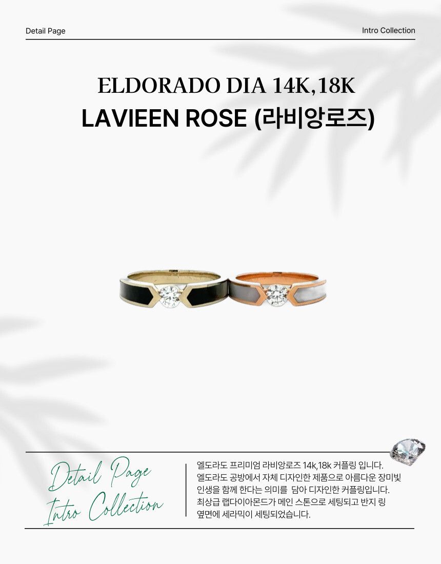 엘도라도 프리미엄 라비앙로즈 14k,18k 커플링 입니다. 엘도라도 공방에서 자체 디자인한 제품으로 아름다운 장미빛 인생을 함께 한다는 의미를 담아 디자인한 커플링입니다. 최상급 랩다이아몬드가 메인 스톤으로 세팅되고 반지 링 옆면에 세라믹이 세팅되었습니다.