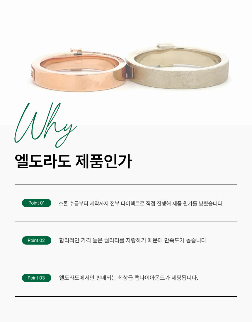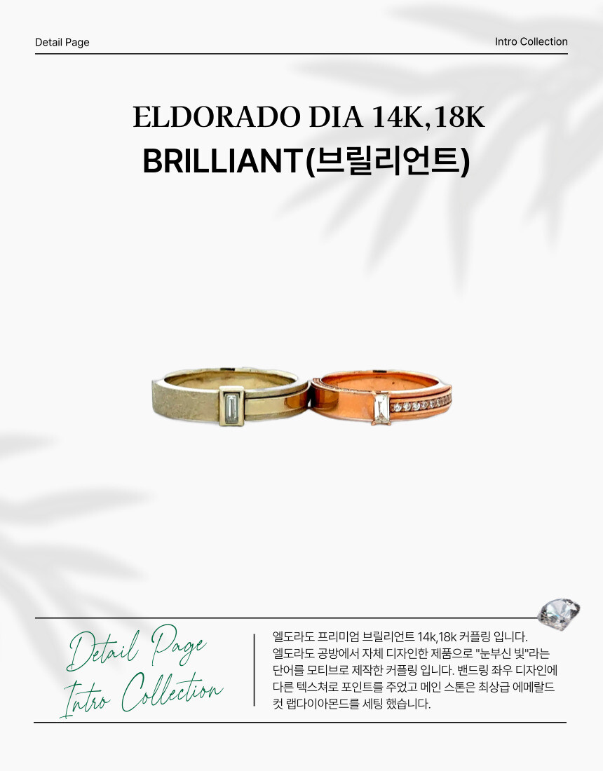 엘도라도 프리미엄 브릴리언트 14k,18k 커플링 입니다. 엘도라도 공방에서 자체 디자인한 제품으로 "눈부신 빛"라는 단어를 모티브로 제작한 커플링 입니다. 밴드링 좌우 디자인에