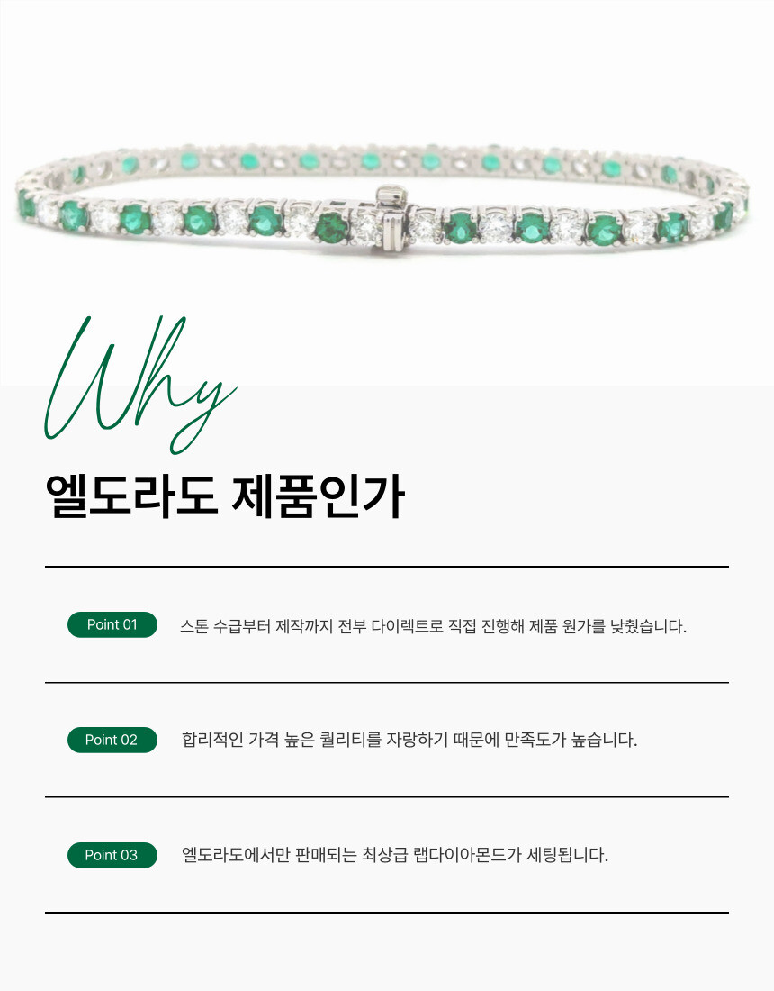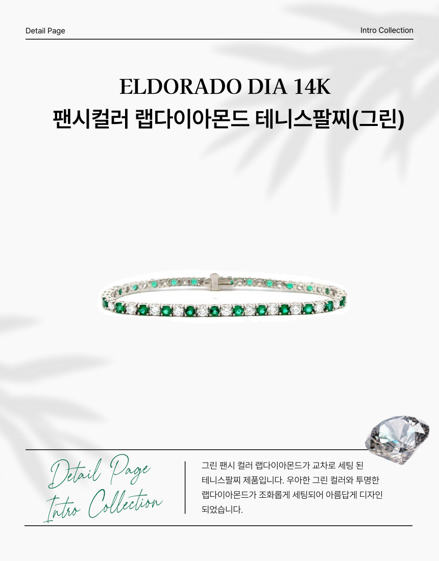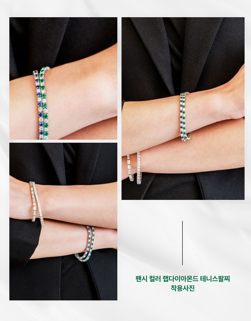 그린 팬시 컬러 랩다이아몬드가 교차로 세팅된 테니스팔찌 제품입니다. 우아한 그린 컬러와 투명한 랩다이아몬드가 조화롭게 세팅되어 아름답게 디자인 되었습니다.