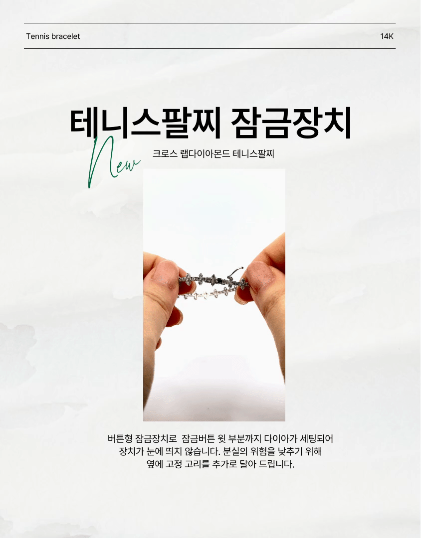 일반 테니스 팔찌보다 작은 스톤으로 착용하셔도 존재감이 있는 디자인으로 어떤 각도에서도 광채를 잃지 않는 제품입니다.