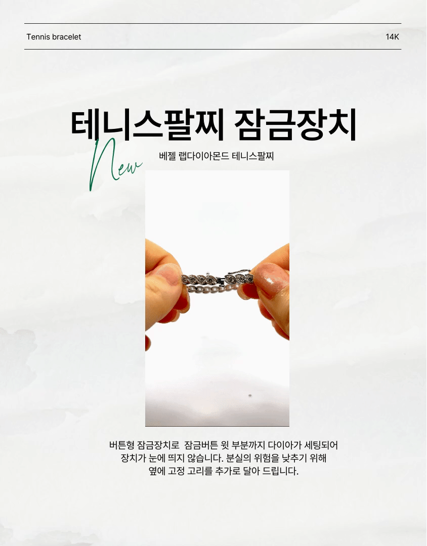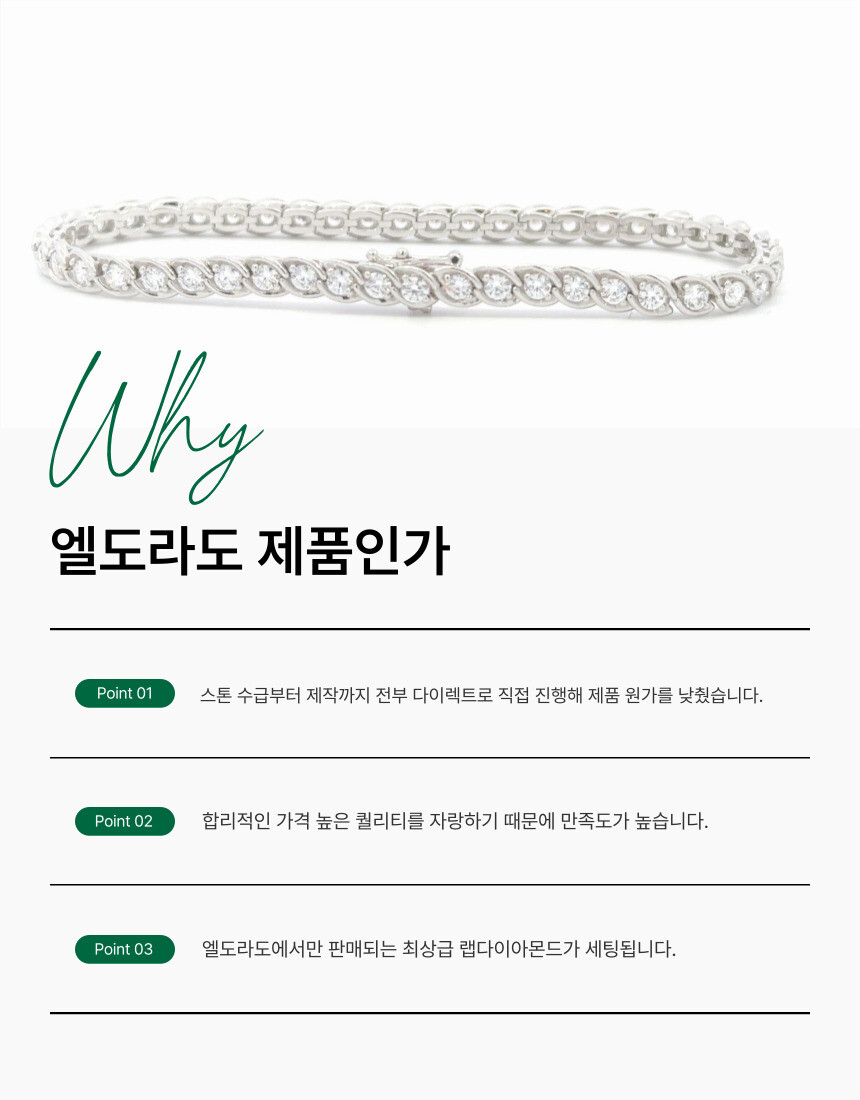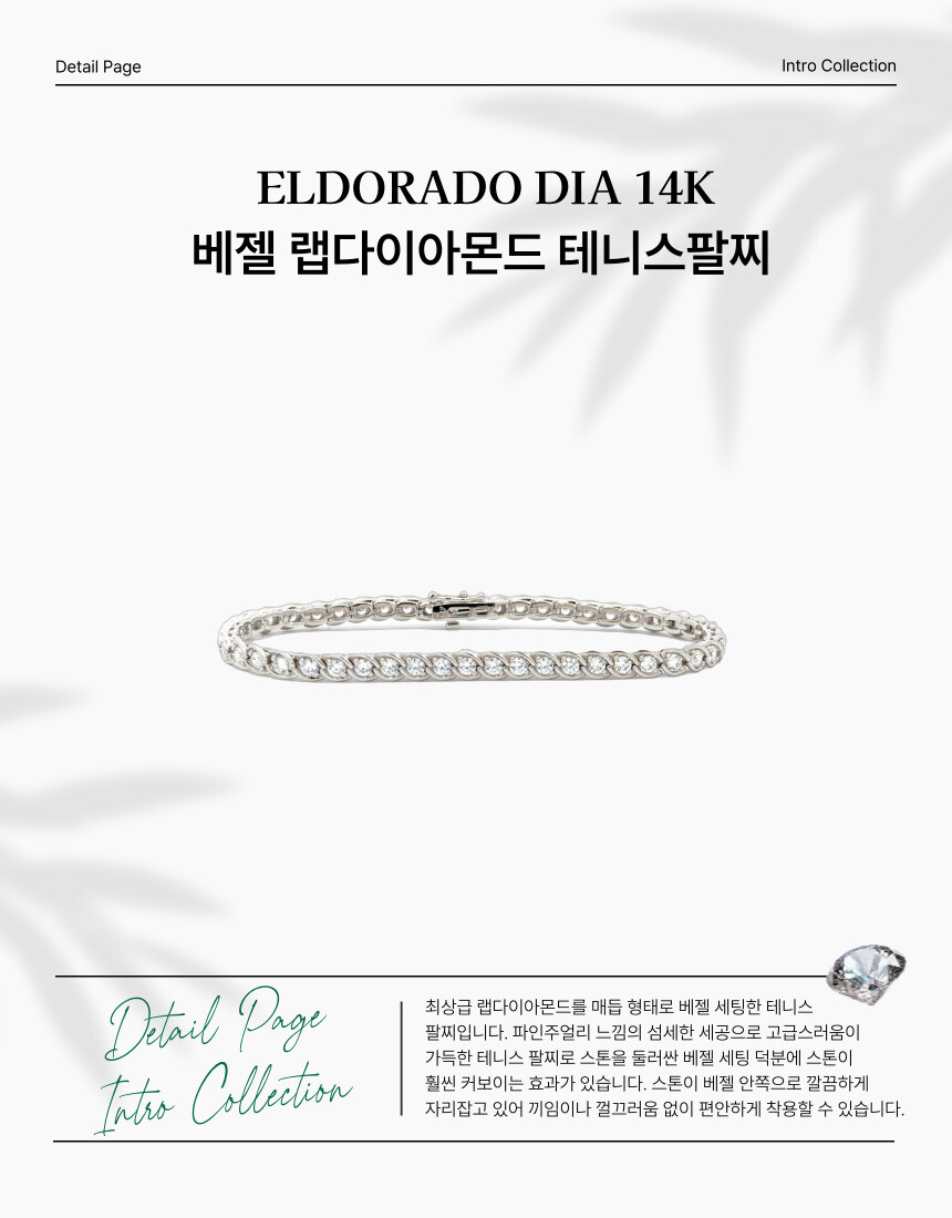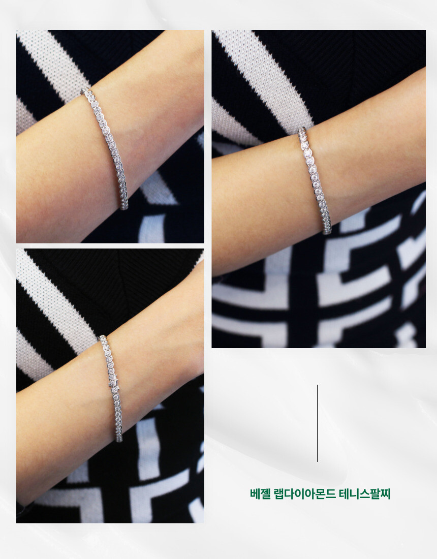최상급 랩다이아몬드를 매듭 형태로 베젤 세팅한 테니스팔찌입니다. 파인주얼리 느낌의 섬세한 세공으로 고급스러움이 가득한 테니스팔찌로 스톤을 둘러싼 베젤세팅 덕분에 스톤이 훨씬 커보이는 효과가 있습니다.