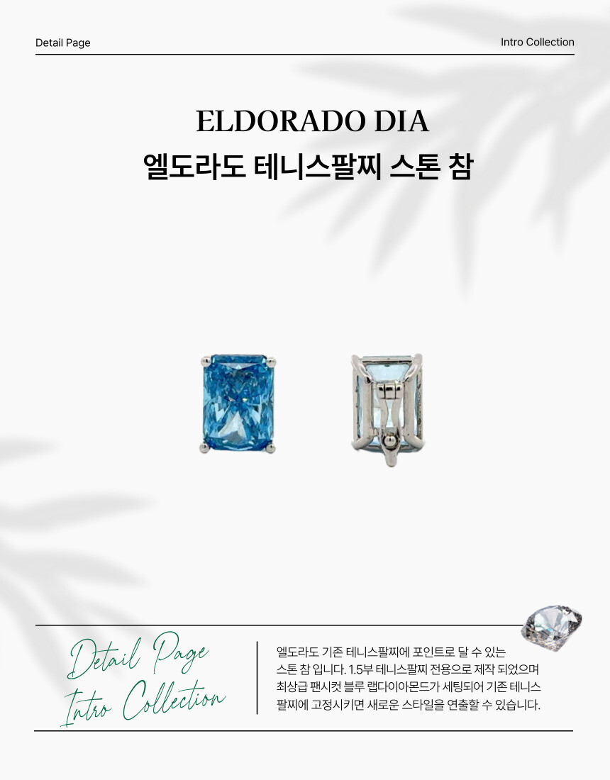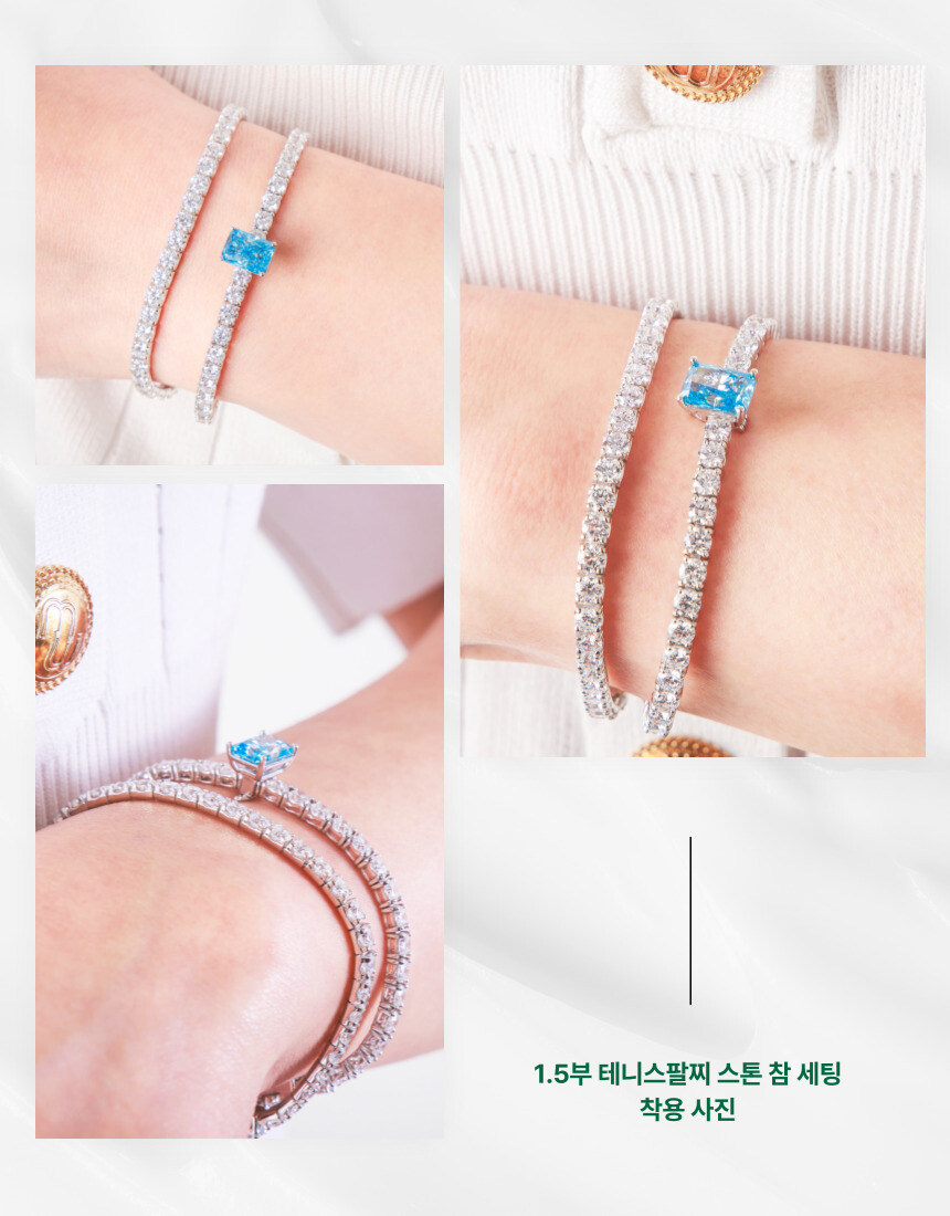 엘도라도 기존 테니스팔찌에 포인트로 달 수 잇는 스톤 참 입니다. 1.5부 테니스팔찌 전용으로 제작되었으며 최상급 팬시컷 블루 랩다이아몬드가 세팅되어 기존 테니스팔찌에 고정 시키면 새로운 스타일을 연출할 수 있습니다.