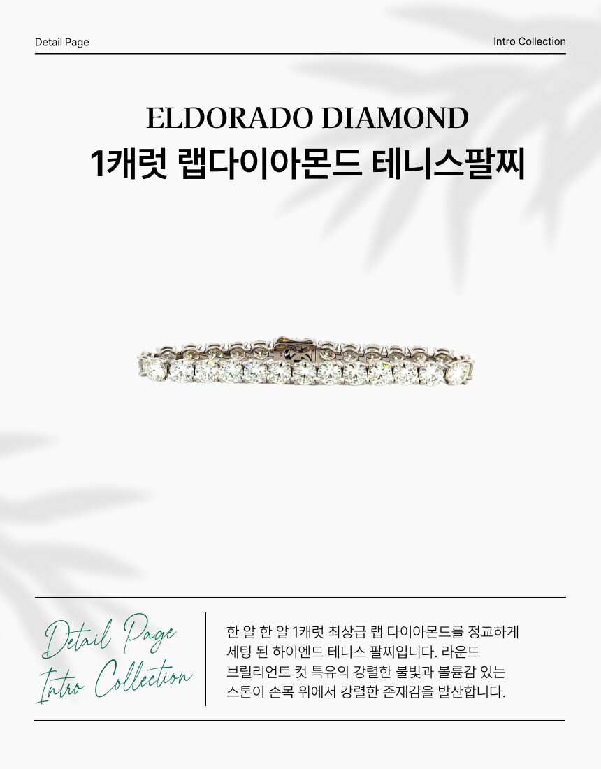 한 알 한 알 1캐럿 최상급 랩 다이아몬드를 정교하게 세팅 된 하이엔드 테니스 팔찌입니다. 라운드 브릴리언트 컷 특유의 강렬한 불빛과 볼륨감 있는 스톤이 손목 위에서 강렬한 존재감을 발산합니다.
