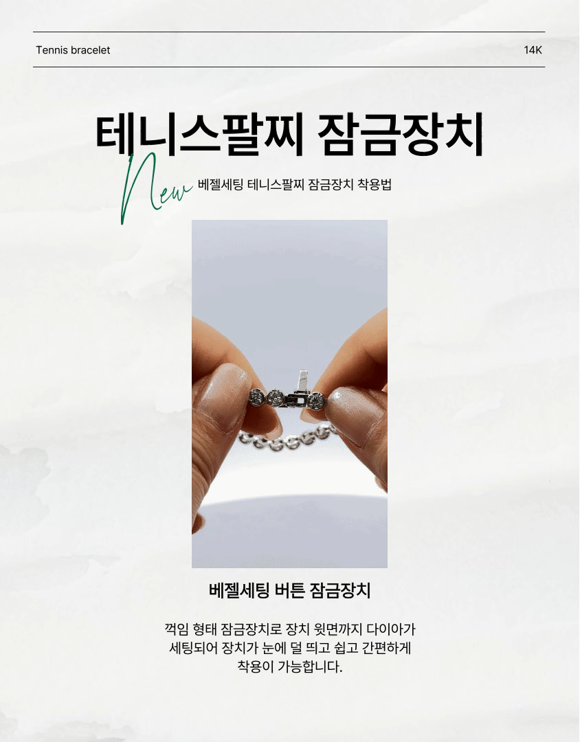 베젤 세팅은 스톤의 가장자리를 완벽하게 감싸는 세팅 방식으로 테니스팔찌로 제작 했을 때 스톤 하나하나에 큰 볼륨감을 주며 스톤을 단단하게 고정시키기 때문에 안전하고 깔끔한 인상을 줍니다.