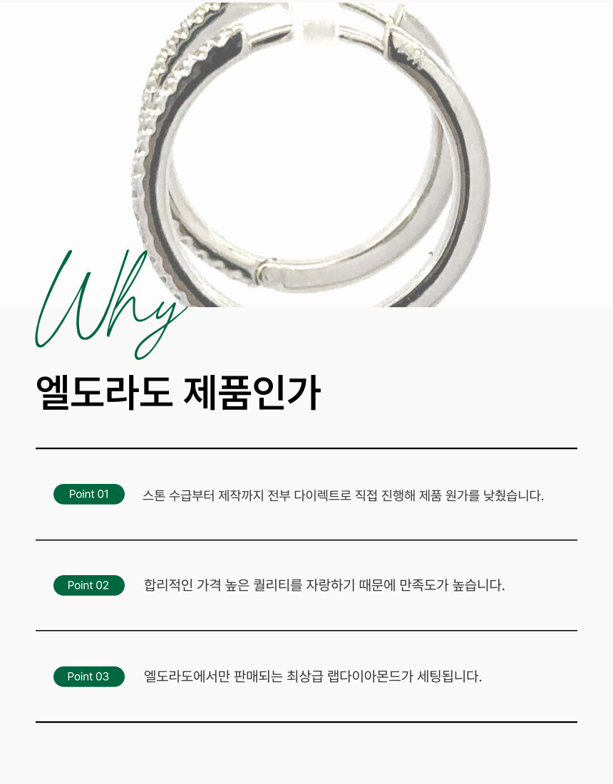 멜리 사이즈 랩다이아를 후프 앞면만 하프 세팅 했습니다. 슬림한 링 형태로 랩다이아를 파베 세팅해서 은은하면서도 고급스러운 느낌을 연출할 수 있습니다.