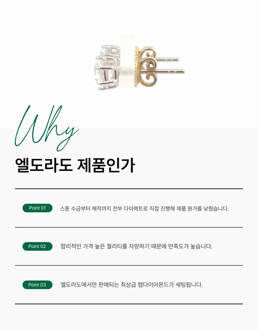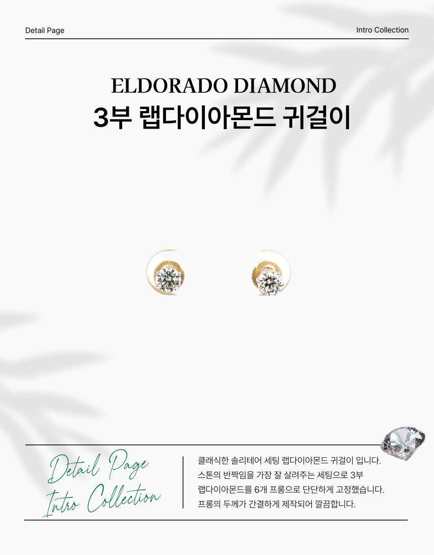 6프롱 솔리테어 세팅은 귀걸이 제품 중에서도 가장 인기가 많은 제품으로 엘도라도 스테디셀러 제품 중에 하나입니다. 스톤의 반짝임을 가장 잘 살려주는 세팅입니다.