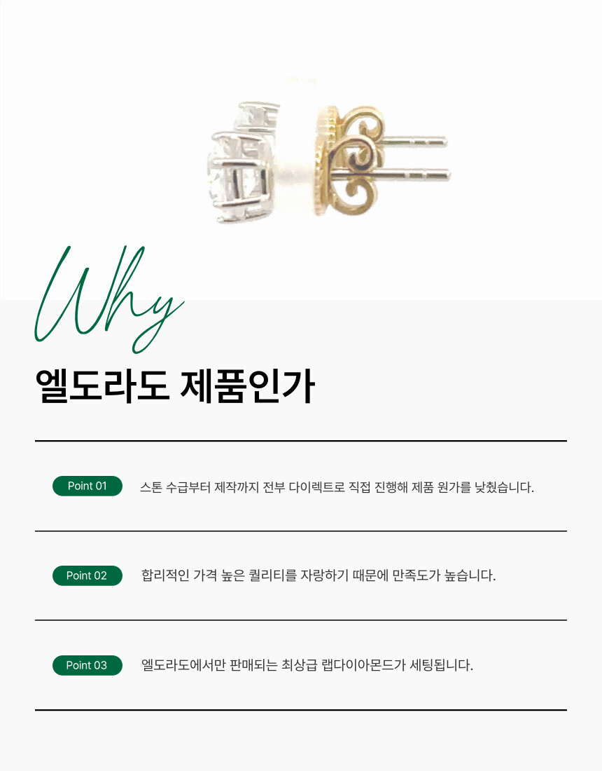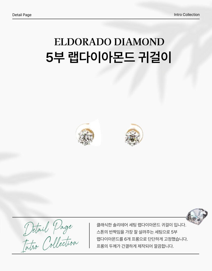 6프롱 솔리테어 세팅은 귀걸이 제품 중에서도 가장 인기가 많은 제품으로 엘도라도 스테디셀러 제품 중에 하나입니다. 스톤의 반짝임을 가장 잘 살려주는 세팅입니다.