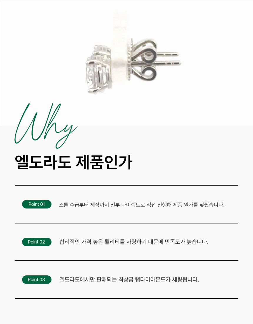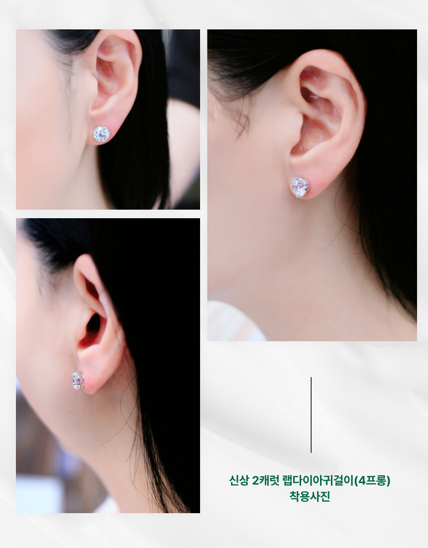 클래식한 디자인의 매력은 그대로 살리면서, 프롱(발) 높이를 낮춰서 귀걸이가 귓볼에 더 밀착 되도록 제작했습니다. 1캐럿 이상 볼륨 있는 스톤을 착용 했을 때, 무게 때문에 귀가 처지는 경우가 많은데, 이번 신상은 그런 현상을 줄여 주어 편안한 착용감을 느낄 수 있습니다.