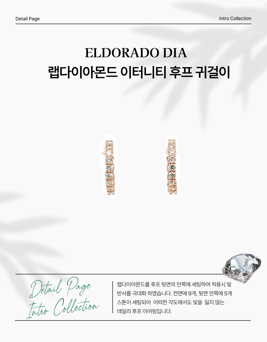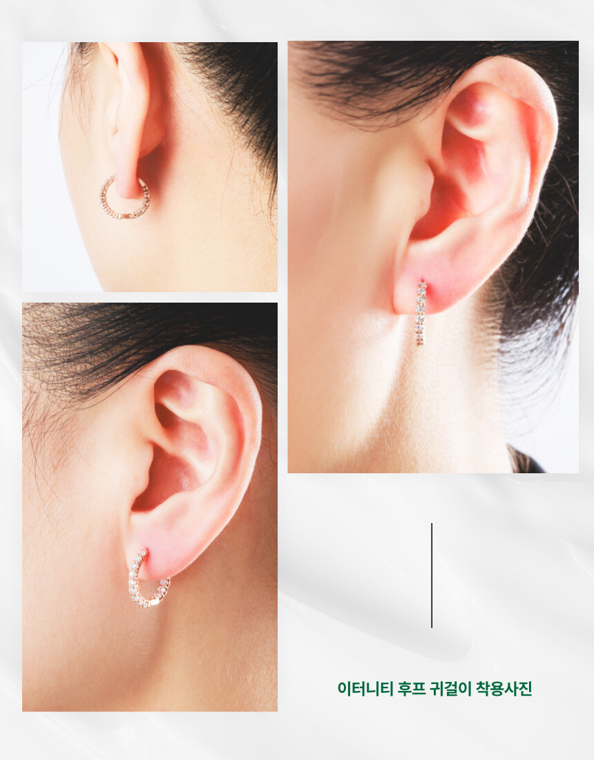 최상급 랩다이아몬드를 후프 뒷면 안쪽에 세팅하여 착용시 빛반사를 극대화 하였습니다. 전면에 9개, 뒷면 안쪽에 5개 스톤이 세팅되어 어떠한 각도에서도 빛을 잃지 않는 데일리용 후프 이어링입니다.