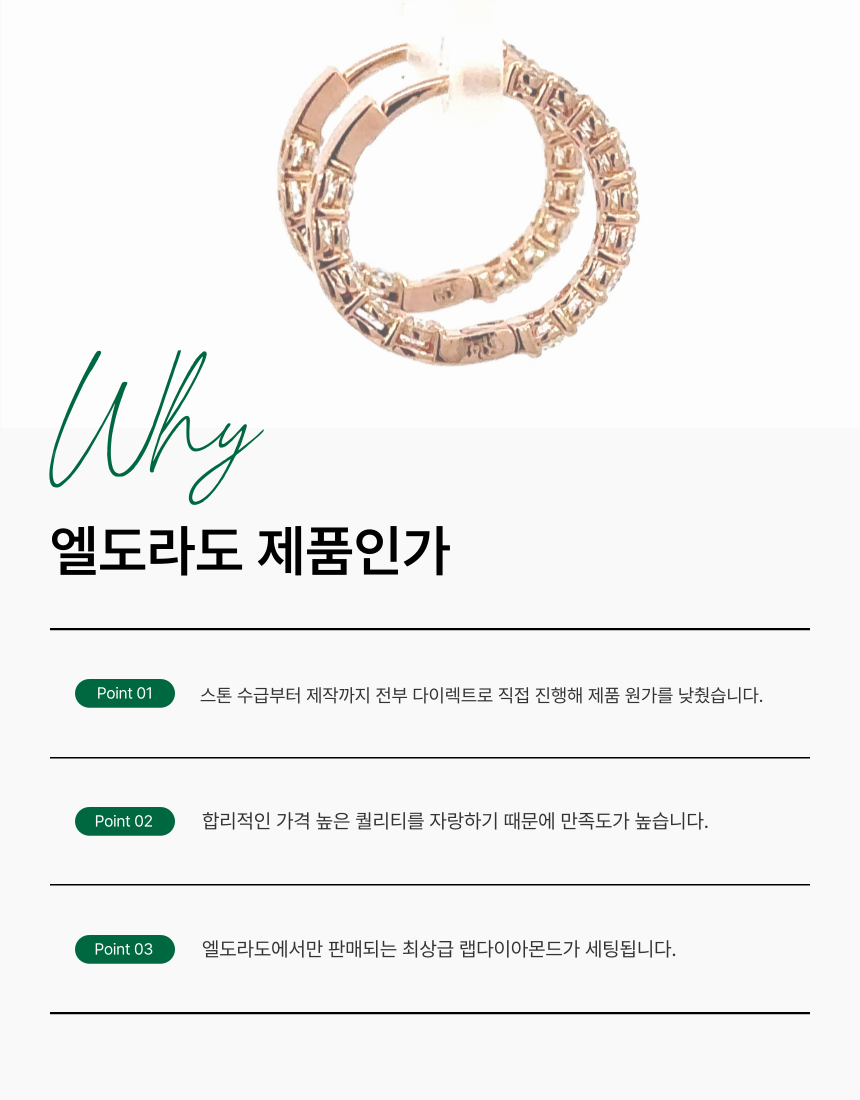5P 랩다이아몬드 이터니티 후프 귀걸이(핑골)