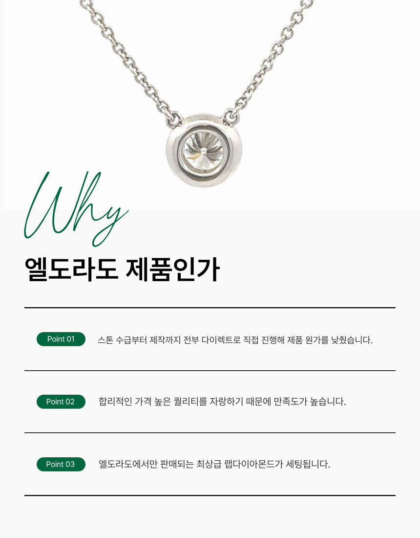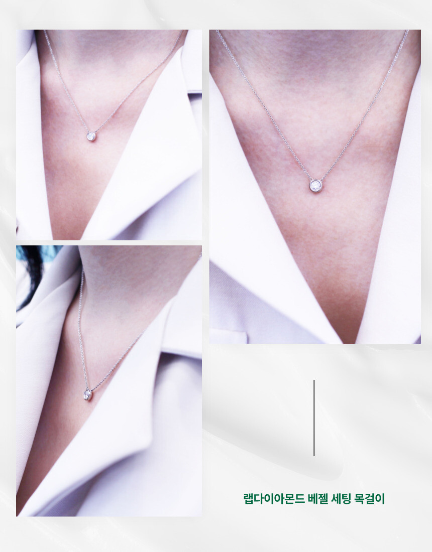 심플한 라운드 모양으로 랩다이아몬드가 베젤 세팅된 목걸이입니다. 유행과 상관없이 오랫동안 데일리하게 착용이 가능한 제품입니다.