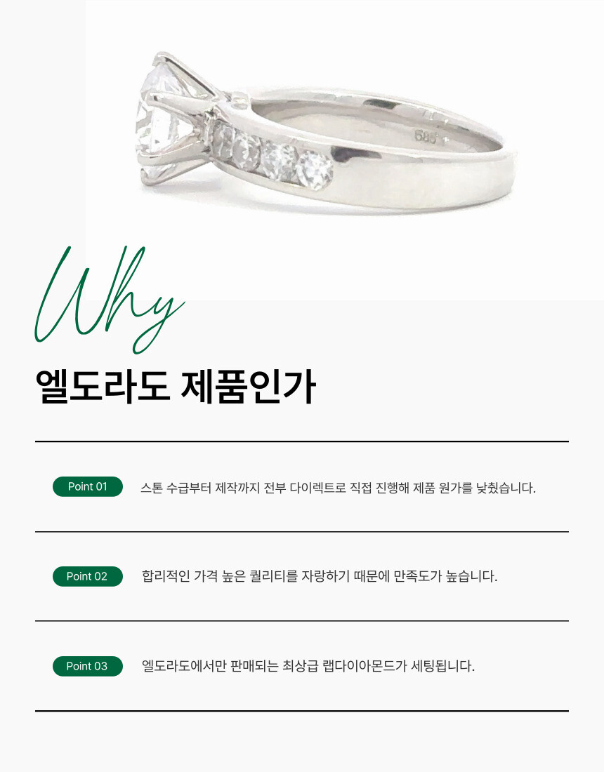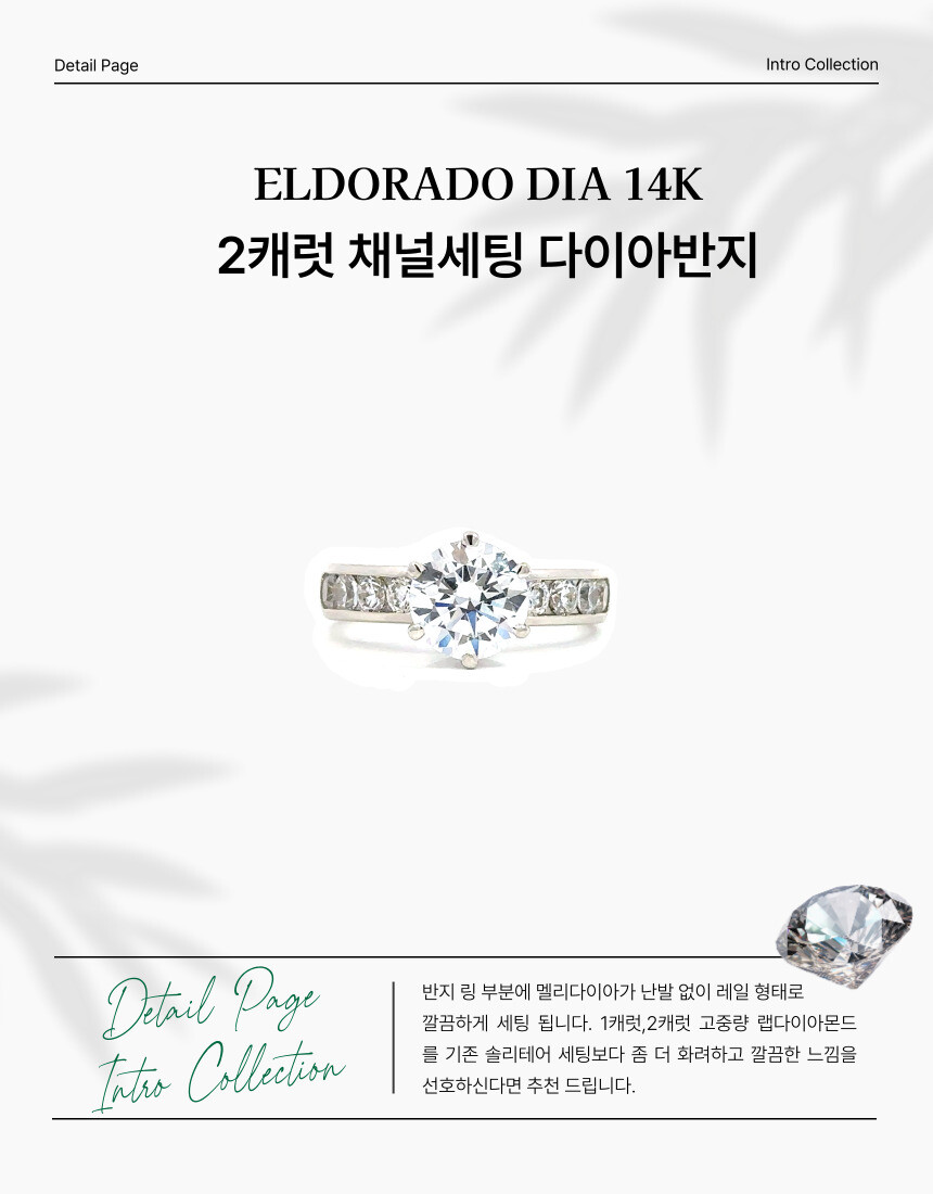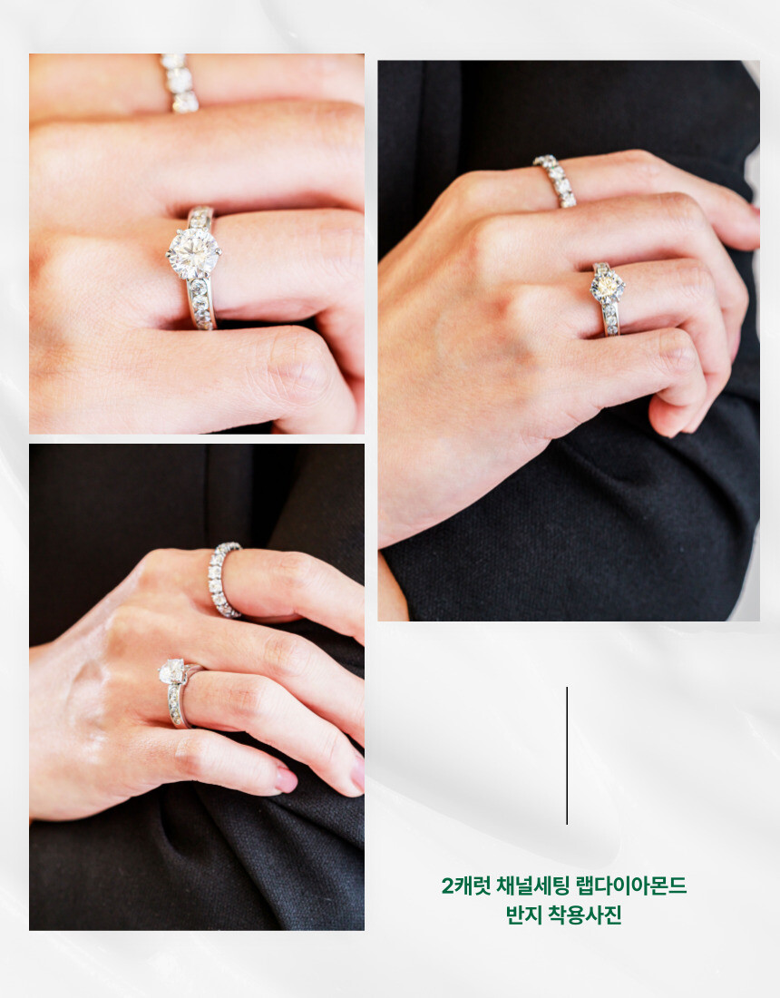 반지 링 부분에 멜리다이아가 난발 없이 레일 형태로 깔끔하게 세팅됩니다. 1캐럿,2캐럿 고중량 랩다이아몬드를 기존 솔리테어 세팅보다 좀 더 화려하고 깔끔한 느낌을 선호하신다면 추천드립니다.
