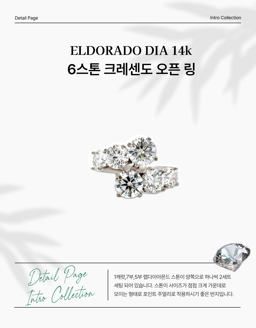 1캐럿,7부,5부 랩다이아몬드 스톤이 양쪽으로 하나씩 2세트 세팅 되어 있습니다. 스톤이 사이즈가 점점 크게 가운데로 모이는 형태로 포인트 주얼리로 착용하시기 좋은 반지입니다.