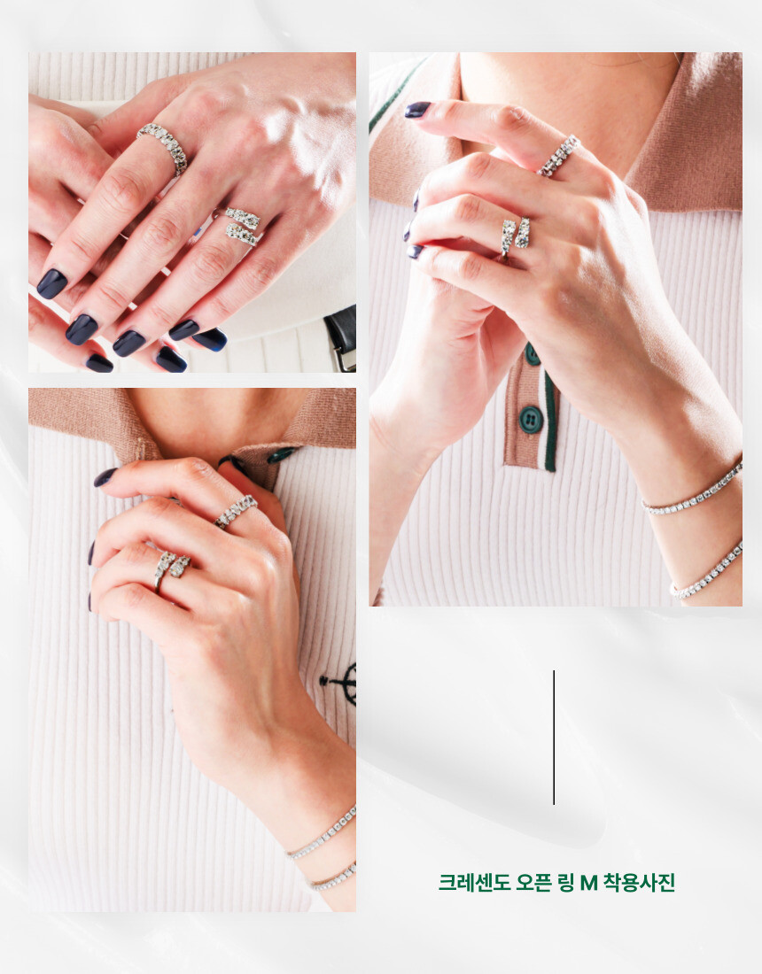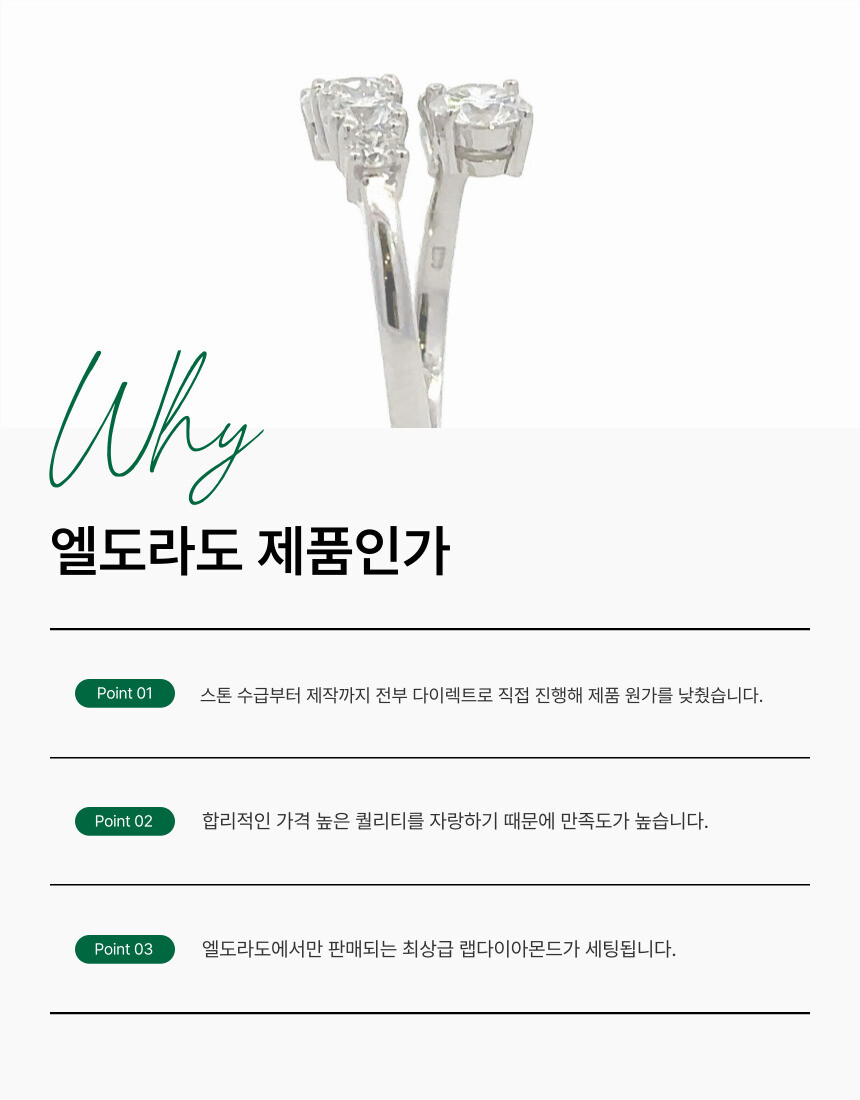5부,3부,1부 랩다이아몬드 스톤이 양쪽으로 하나씩 2세트 세팅 되어 있습니다. 스톤이 사이즈가 점점 크게 가운데로 모이는 형태로 포인트 주얼리로 착용하시기 좋은 반지입니다.