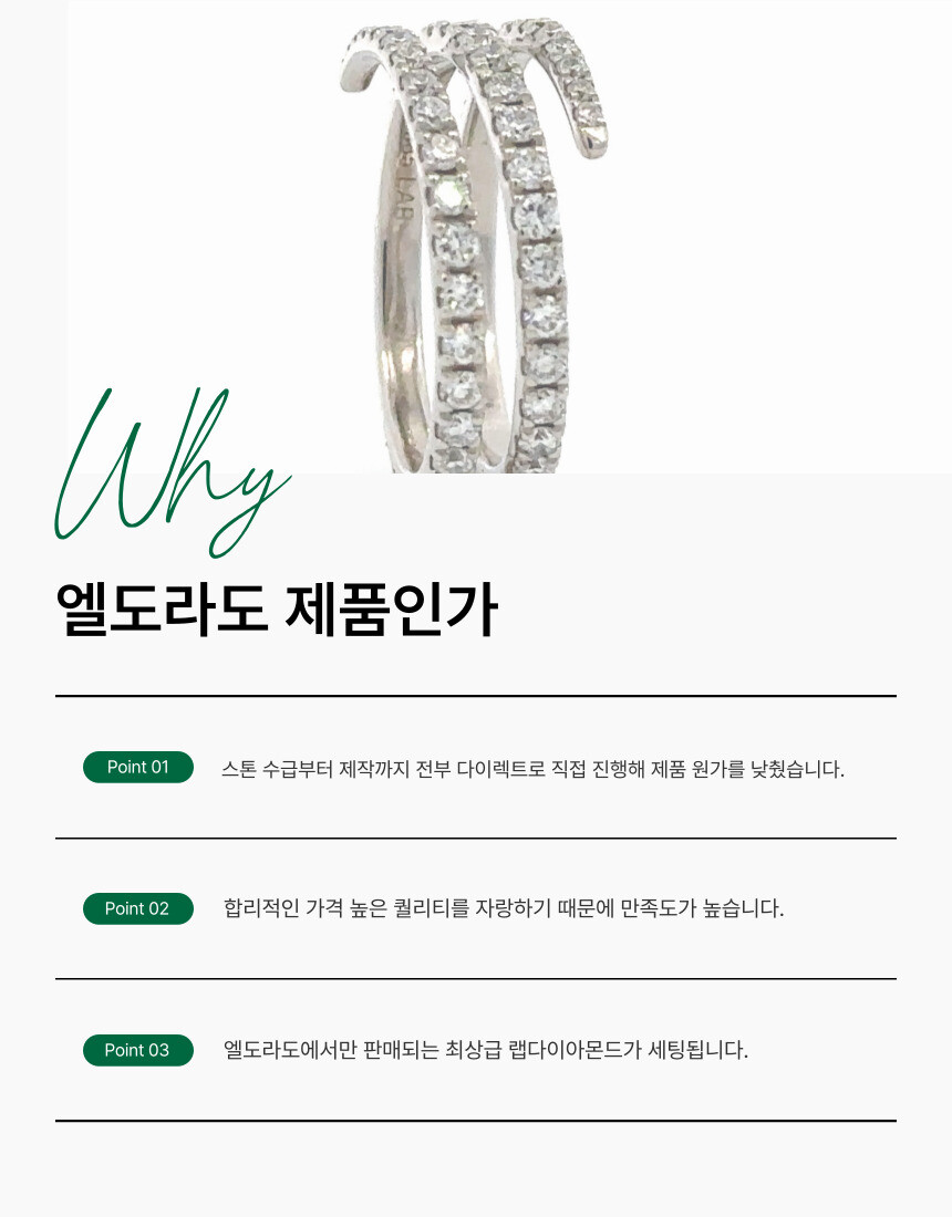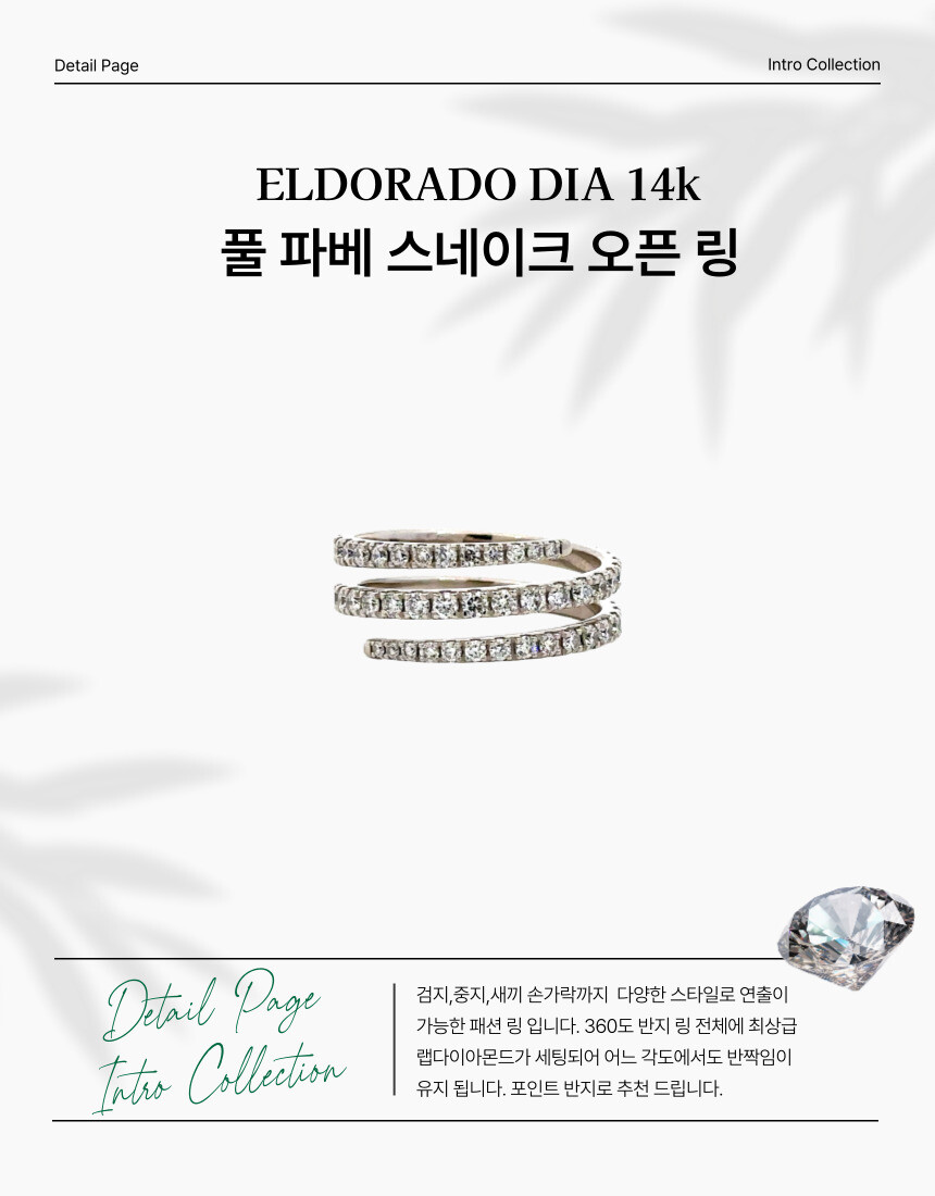 검지,중지,새끼 손가락까지 다양한 스타일로 연출이 가능한 패션 링입니다. 360도 반지링 전체에 최상급 랩다이아몬드가 세팅되어 어느 각도에서도 반짝임이 유지 됩니다. 포인트 반지로 추천하는 제품입니다.