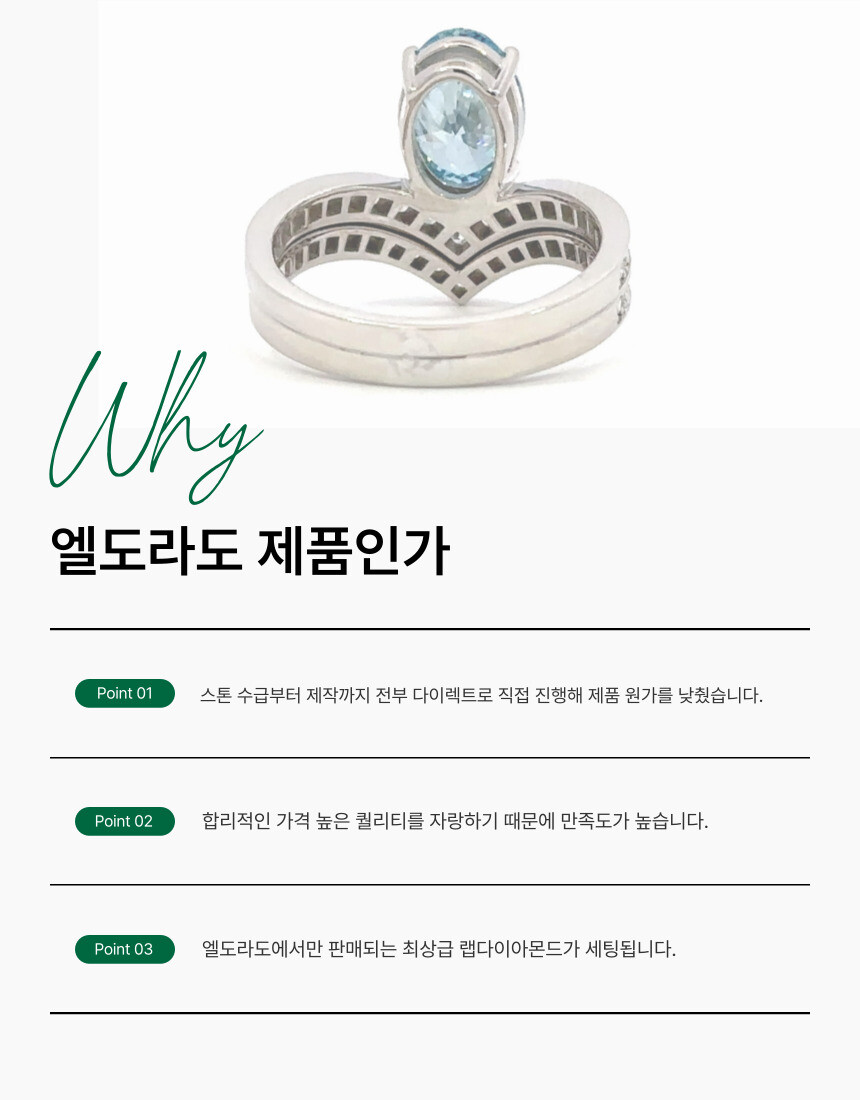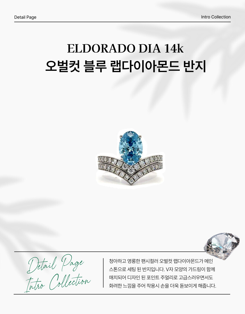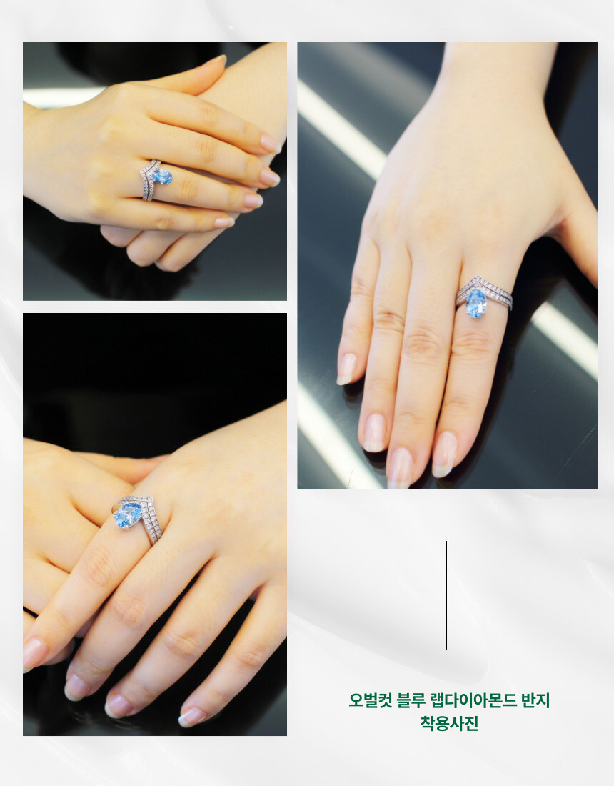 청아하고 영롱한 팬시컬러 오벌컷 랩다이아몬드가 메인 스톤으로 세팅 된 반지입니다. V자 모양의 가드링이 함께 매치되어 디자인 된 포인트 주얼리로 고급스러우면서도 화려한 느낌을 주어 착용 시 손을 더욱 돋보이게 해줍니다.