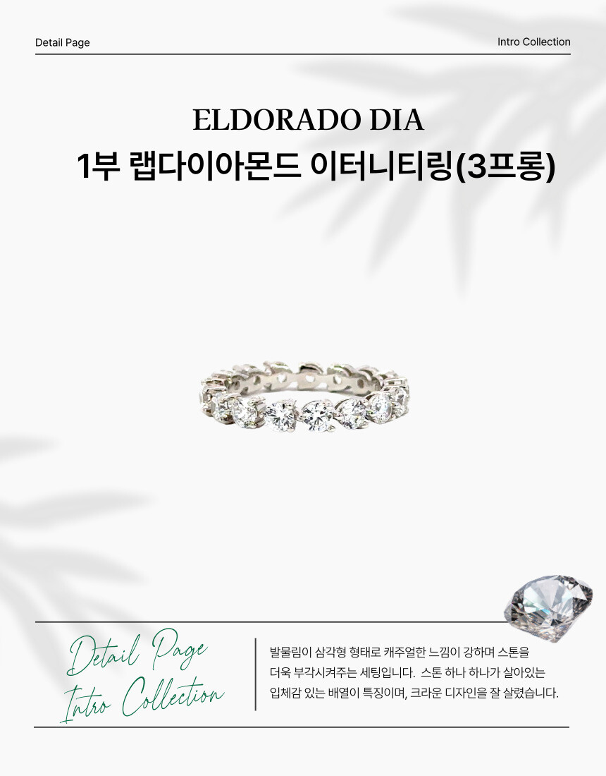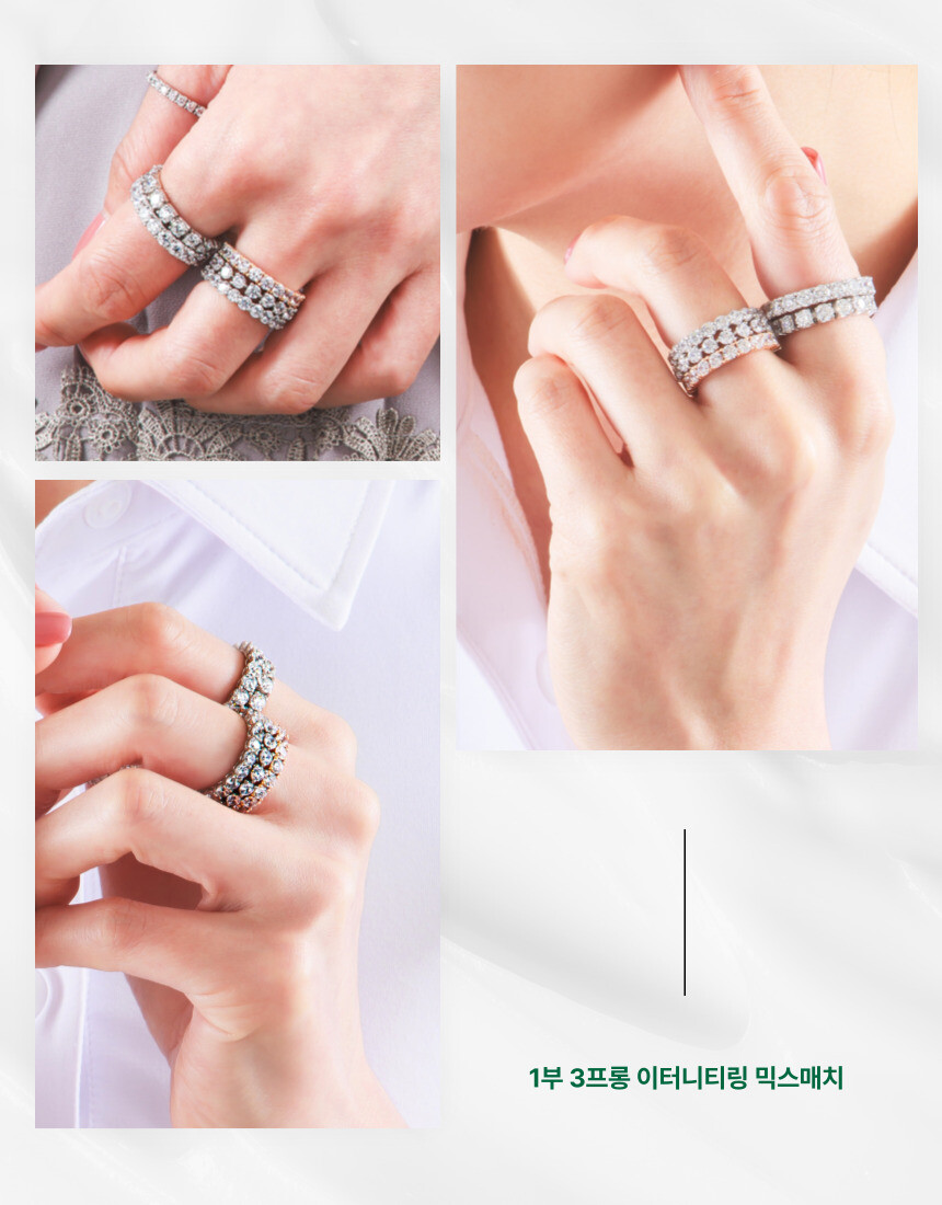 발물림 삼각형 형태로 캐주얼한 느낌이 강하며 스톤을 더욱 부각시켜주는 세팅입니다. 스톤 하나 하나가 살아있는 입체감 있는 배열리 특징이며, 크라운 디자인을 살렸습니다.