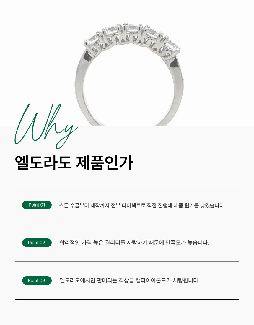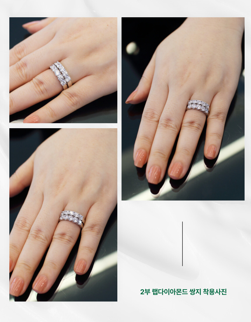 반지 윗면에만 스톤이 세팅되어 착용감이 뛰어나고 프롱을 최대한 눌러잡아 걸림은 최소화 하고 반짝임은 더욱 극대화했습니다. 외지 혹은 쌍지로도 착용이 가능합니다.