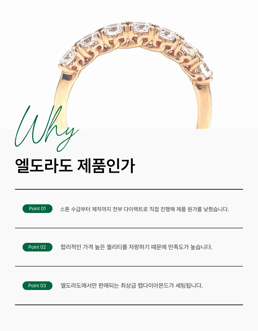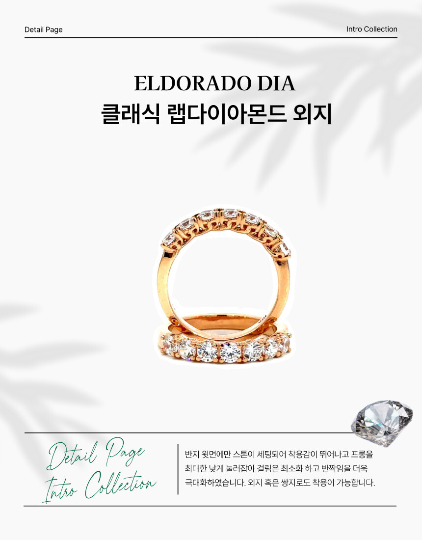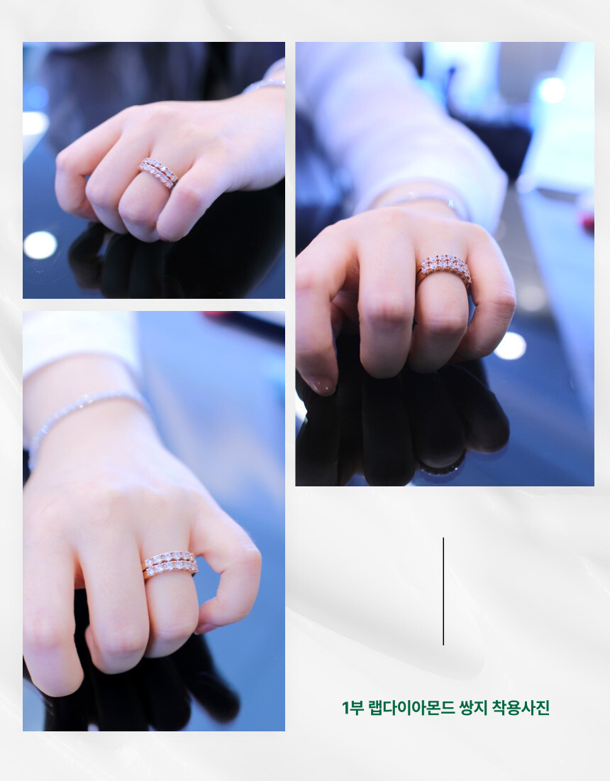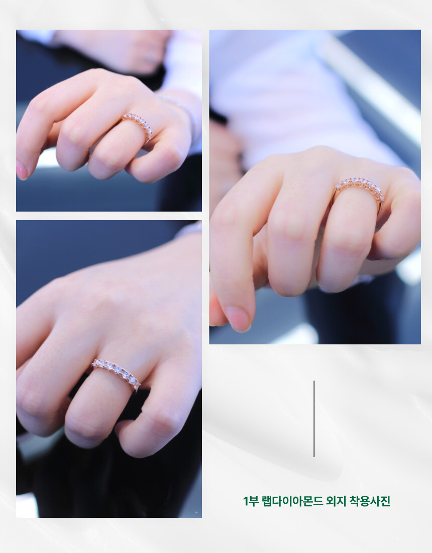 반지 윗면에만 스톤이 세팅되어 착용감이 뛰어나고 프롱을 최대한 눌러잡아 걸림은 최소화 하고 반짝임은 더욱 극대화했습니다. 외지 혹은 쌍지로도 착용이 가능합니다.
