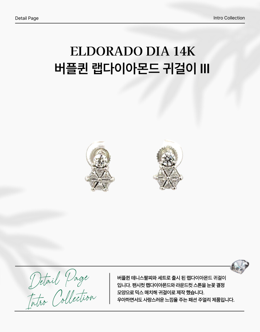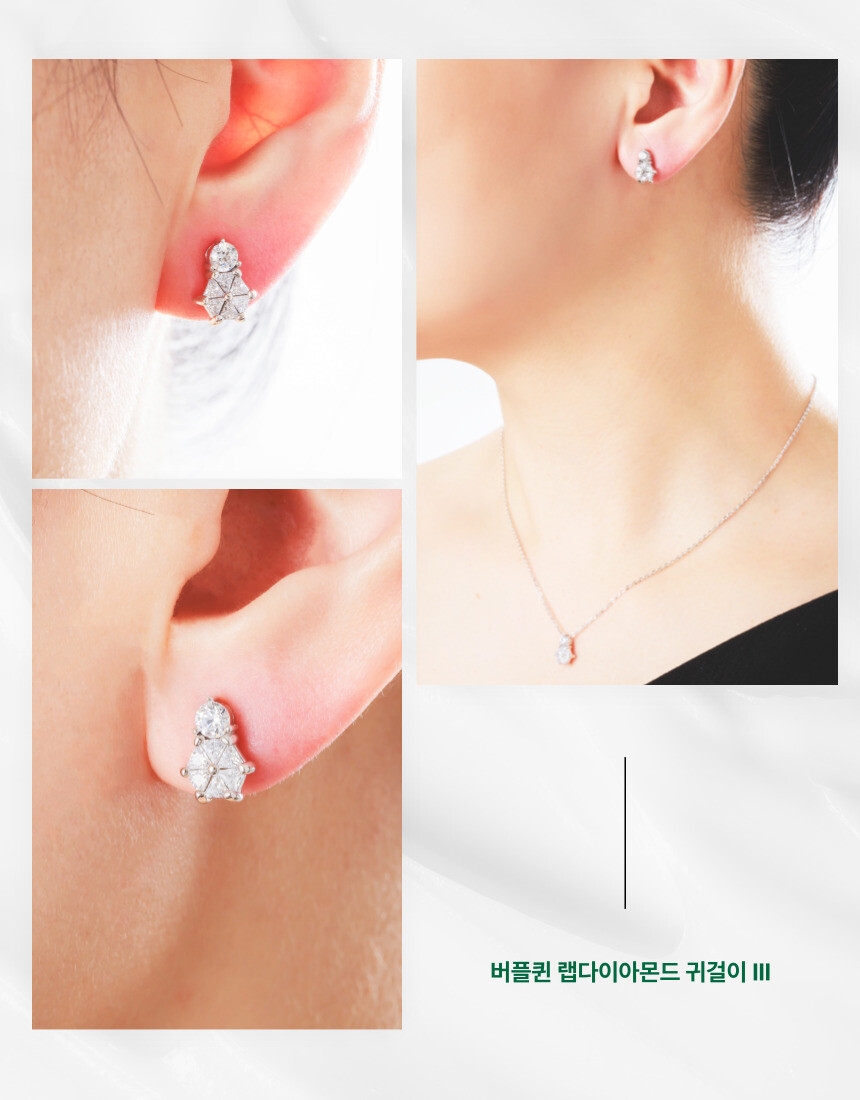 버플퀸 테니스팔찌와 세트로 출시 된 랩다이아몬드 귀걸이입니다. 팬시컷 랩다이아몬드와 라운드컷 스톤을 눈꽃 결정 모양으로 믹스 매치해 귀걸이로 제작 했습니다. 우아하면서도 사랑스러운 느낌을 주는 패션 주얼리 제품입니다.