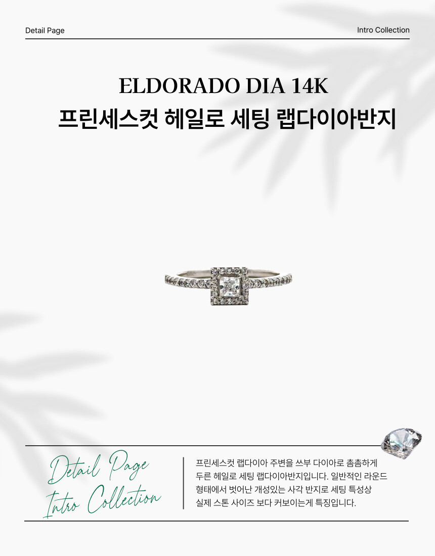 프린세스컷 랩다이아 주변을 쓰부 다이아로 촘촘하게 두른 헤일로 세팅 랩다이아반지입니다. 일반적인 라운드 형태에서 벗어난 개성있는 사각 반지로 세팅 특성상 실제 스톤 사이즈 보다 커보이는게 특징입니다. 감각적인 스타일로 패션 반지로 추천하는 제품입니다.