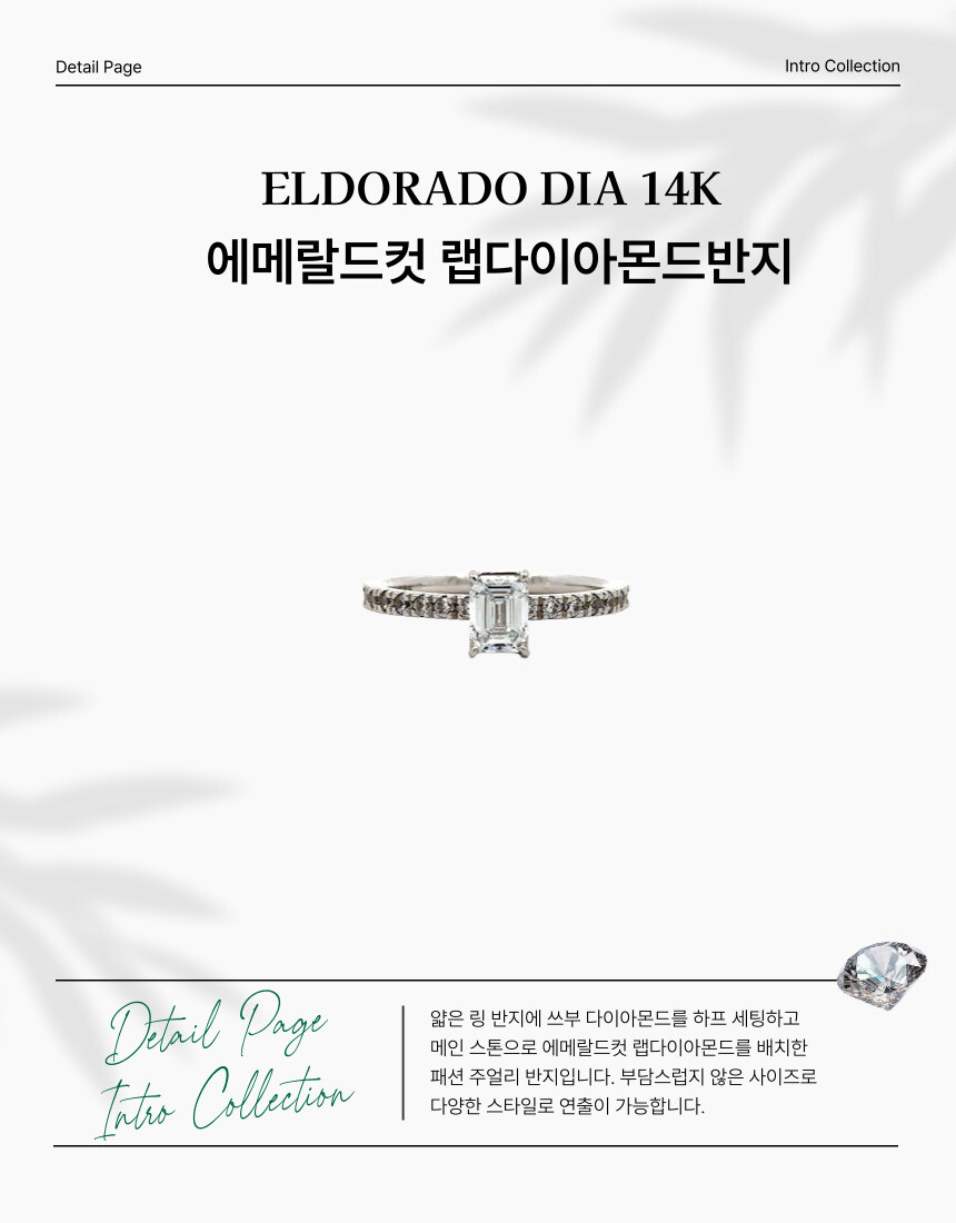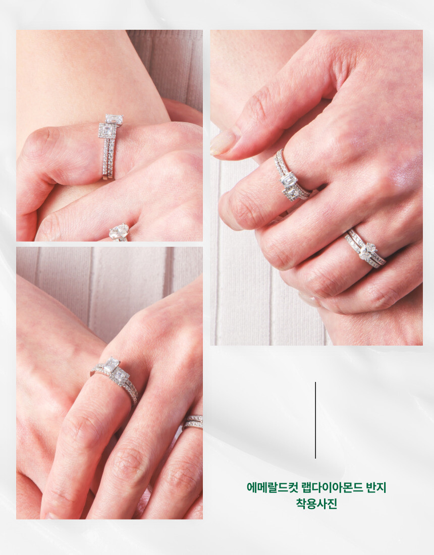 얇은 링 반지에 쓰부 다이아몬드를 하프 세팅하고 메인 스톤으로 에메랄드컷 랩다이아몬드를 배치한 패션 주얼리 반지입니다. 부담스럽지 않은 사이즈로 다양한 스타일로 연출이 가능합니다.